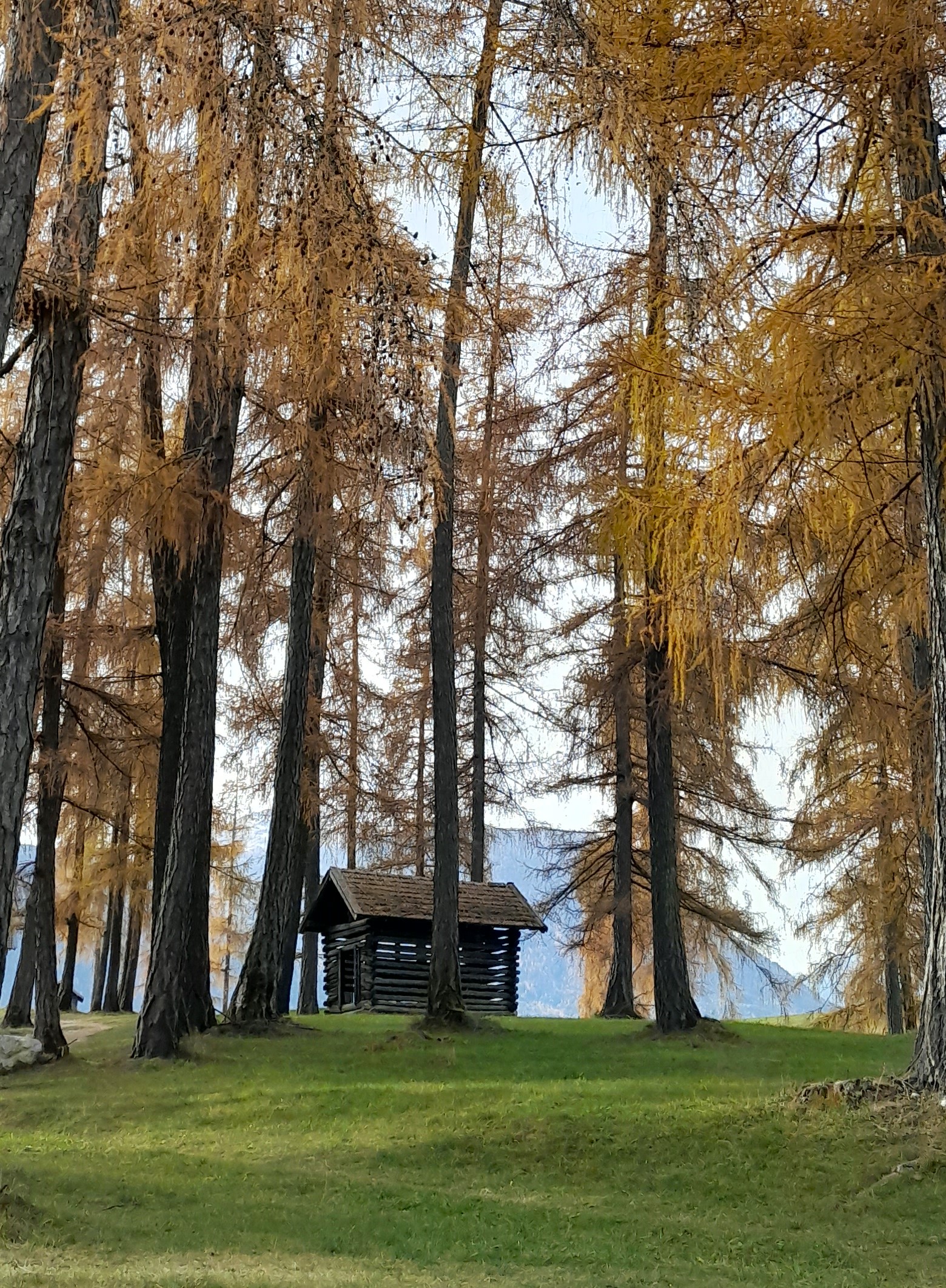 Milliarden goldener Nadeln erzählen vom zarten Grün des Frühlings und leuchten strahlend im Licht der herbstlichen Sonne. Föhnwind weht durch die Lärchenhaine und löst die Nadeln von den Bäumen. Es ist so still, als könnte ich hören, wie die Nadeln auf den Boden fallen oder wie ein Eichhörnchen über meinen Weg hüpft. Die Wiesen riechen nach frischer Sure. Majestätisch ragen die Kalkwände des Wettersteins oberhalb der Wälder und Wiesen in den Himmel. Bei meiner Runde von Telfs über das Mieminger Plateau, den Holzleitensattel und durch das Gurgltal und dann über Karrösten ins Inntal und schließlich am Radweg zurück nach Ötztal-Bahnhof kann ich wieder in körperlich-seelischer Ganzheit in herbstliche Natur- und Kulturlandschaften eintauchen. Ich habe eigentlich kein bestimmtes Ziel, weil das Fahren und Sein in der Natur schon Ziel in sich ist. Das Gravelbike ist einmal mehr das ideale Rad für diese Strecke, auf der es großteils auf Wald- und Wiesenwegen geht und selbst einmal kurze Single-Trails Abwechslung bieten. Da ist auch Zeit zum Verweilen und um Gedanken und Gefühle fließen zu lassen.