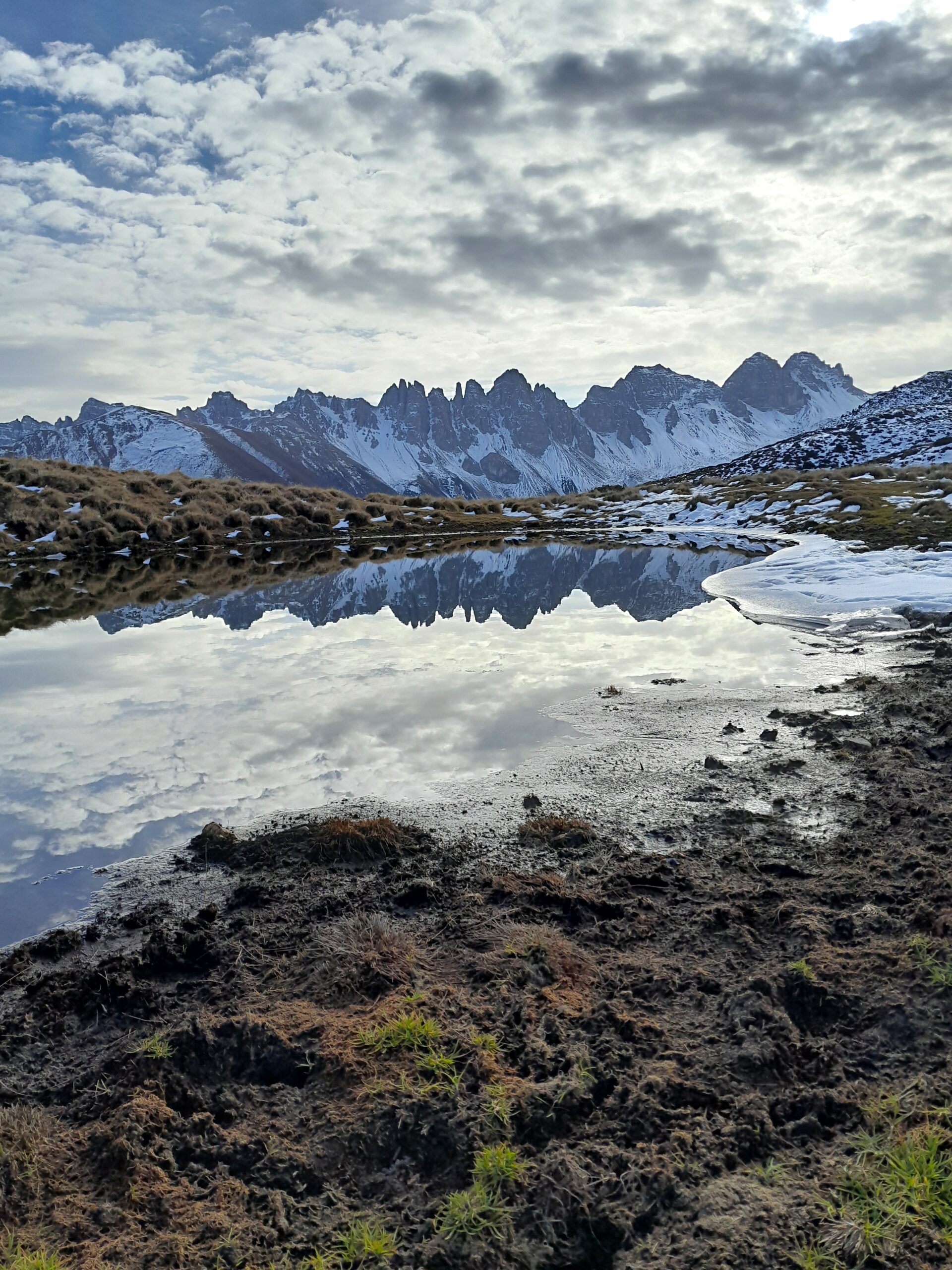 Während in der Stadt an diesem Mitte-November-Wochenende erstmals in dieser Saison wieder sich Tausende in den Christkindlmärkten drängen, finde ich mein Glück in der Stille der Natur. Das Klebrige ist hier oben nicht industrielle Zuckerwatte, sondern das Harz einer Zirbe. Es leuchten nicht die Abertausenden LED-Lämpchen aufdringlich weihnachtlicher Dekos, sondern die Lärchennadeln mit einer Kraft, die aus ihrem Inneren zu kommen scheint. Das kühle Wasser des Bächleins belebt – anders als zuckersüßer Glühwein. Die Luft duftet frisch nach den Schneeresten vergangener Tage. Ich höre nicht schon viele Wochen vor Weihnachten „so this is Christmas“ in den Endlosschleifen, sondern den Föhnwind durch die braunen Grasbüschel wehen. Im Tal unten bleiben die gräulichen Emissionsschleier – Ausscheidungsprodukte des massenhaften Autowahns, mit deren katastrophalen Folgen sich gerade Menschen bei der Weltklimakonferenz im fernen Brasilien beschäftigen. Hier oben auf 2000 Meter, auf dem Rücken zwischen Senderstal und Fotschertal, wage ich es, tief durchzuatmen. Der Himmel über mir ist durchkreuzt von Kondensstreifen der Flugzeuge, in denen Menschen hocken, die in fernen Ländern ihr Glück suchen. Ich finde es ein wenig hier: sanft und nicht aufdringlich, authentisch und nicht gekünstelt, gnadenhaft geschenkt und nicht käuflich, analog und nicht virtuell, himmel-erdverbunden und nicht entfremdet. Exakt vor drei Jahren war ich auch hier, ganz alleine, eingetaucht in stille Einsamkeit, noch im Dunkeln das Licht der aufgehenden Sonne über den Kalkkögeln erwartend. Damals, vor drei Jahren, an diesem Morgen, der so klar war wie die Eisbrocken auf dem schon etwas gefrorenen See, dachte ich an Camus und das Absurde im Leben. Damals schrieb ich dann in meinem Blog an gegen dieses Absurde – weil ich weiß und erfahre, dass sich Absurdität in der Begegnung mit einem Du in Sinn auflöst und sich in Glücksmomente hin verwandelt.
