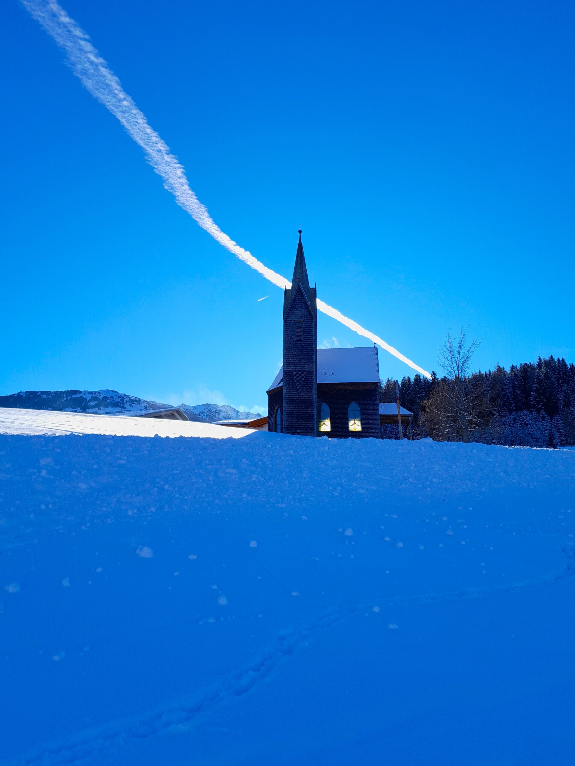 Aufstieg vom Fuß des Berges bis zu seinem Kopf. 2100 Höhenmeter sind es. Volders. Von der Karlskirche bis auf den Glungezer, vom Lärm der nahen Autobahn und meiner ehemaligen Schule über Wiesenhänge, die nur oberflächlich mit Schnee bedeckt sind. Den Lärm der Verbrennungsmotoren im Inntal und damit die Emissionen möchte ich schnell weit unten lassen, so als könnte ich abstreifen, was in unserer Welt gefährlich falsch läuft. Die Wetterextreme und die Treibhausgaswelt hängen zusammen. Ein neuer Tag hat begonnen. Der Himmel ist tiefblau. Der Schnee spiegelt das Blau wider. Der Himmel ist durchfurcht von Siriuswolken und Kondensstreifen. Ich bin allein und fühle mich einsam mit meinen zivilisationskritischen Gedanken, mit meiner Wut über die Lage in der Welt, schäme mich fast meines Privilegs, weit weg vom unerträglichen Kriegsgeschehen in fast 100 Ländern dieser Welt zu sein. Die Nebelschicht im Tal ist immer weiter unten. Ich wähle den schnellen Aufstieg zur Schäferhütte. So schneearm habe ich den mir so bekannten Gipfel noch nie gesehen. Eine alte Aufstiegsspur zieht sich rund um die Felsbrocken und Steine. Nur eine andere Person ist noch vor mir, die eine Spur zum Gipfelhang zum Sonnenspitzl zieht. Die Schistöcke stechen unter dem windgepressten Deckel ins Bodenlose. Am Gipfel dann blicke ich in eine nur spärlich beschneite Landschaft. Ich fahre defensiv hinunter und kurve um die Steine und tatsächlich gelingt mir eine Abfahrt ohne Steinkontakt und mit Pulverschnee in manchen Mulden. Damit ich die Maulwürfe nicht aus ihren Bauten kratze, wähle ich dann aber doch von Tulfes weg den Bus zurück.