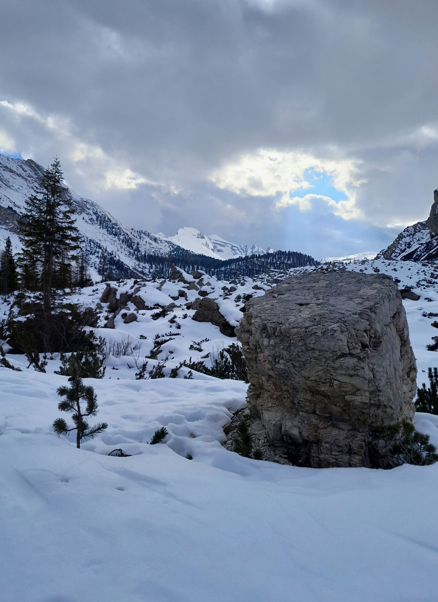 Meine Skitourenziele sind meist in der Nähe meines Lebensbereiches und am liebsten ist es meinem Ökosinn, wenn sie mit Öffis und Rad erreichbar sind. Mit dem Alpenverein Hall erweitere ich manchmal den Radius über die Tuxerberge oder die Stubaier-Alpen hinaus. Der AV-Bus schafft die Möglichkeit dazu, dies umweltfreundlicher zu gestalten. Die diesmalige Destination liegt zwei Stunden entfernt inmitten der Fanesgruppe in Südtirol. Die beiden Tourenführenden haben das Wochenende im UNESCO Weltnaturerbe der Dolomiten perfekt vorbereitet und geplant. Ein großes Geschenk. Rund zwei Stunden dauert der Hüttenzustieg von Pederü weg. Es sind knapp 500 Höhenmeter und sechs Kilometer. Die steilen glatten Felswände zu beiden Seiten schaffen ein Dolomitenfeeling. Zwei Tage bzw. Nächte werden wir auf der Faneshütte (2060 m) professionell und achtsam verwöhnt. Das eher stürmische Frühlings-Winterwetter mit viel Nebel und Schneefall setzt dann die Grenzen für unsere nächsten Ziele. Wieder denke ich mir: Wir müssen uns an Berge und Wetter anpassen und nicht umgekehrt. Das schafft Gelassenheit und Zufriedenheit mit dem, was die Bergwelt uns schenkt. Geplant war am zweiten Tag die Lavarella-Überschreitung. Knapp unterhalb des Gipfels wählen wir aber den Rückzug. Es wird zu ungemütlich. Trotzdem – oder vielleicht gerade deswegen – kann ich die Landschaft genießen. Die eindrucksvollen Dolomitenpyramiden – wie der Piz Taibun – und die steilen Rinnen, die Mulden und Jöcher – und der Schnee lässt sich super befahren und vor allem sind wir eine Gruppe, die gut aufeinander schaut. Am dritten Tag liegt dann reichlich frischer Pulverschnee vor der Hütte. Unser Tourenführer zieht gekonnt eine Spur Richtung Pareispitze. Den Gipfelaufbau lassen wir allerdings dann aus. Dort liegt erstens nur wenig Schnee über den Felsen und zweitens ist das Wetter mit Wind und Nebel nicht zu einladend. Im frischen Pulver können wir dann aber zur Hütte zurück kurven. Sie liegt wie im Brennpunkt einer weiten Arena. Stufenförmig bilden Felsbänder eine halbkreisförmige Landschaft, auf denen kleine Föhren wachsen. „Parlament der Murmeltiere“ wird es auch genannt. Ich las dazu die Sage, die davon erzählt, wie sich hier Murmeltiere zu einer Konferenz versammelten, um die Menschen im Königreich Fanes zu retten. Es braucht kein Gipfelerlebnis, um beschenkt mit der Erfahrung einer besonderen Bergwelt und einer achtsamen Gemeinschaft wieder dankbar hinaus ins Tal nach Pederü zu fahren.